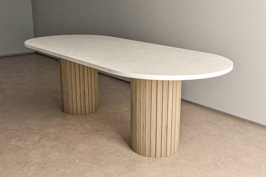 Concrete Oval Table with Wooden Pedestals