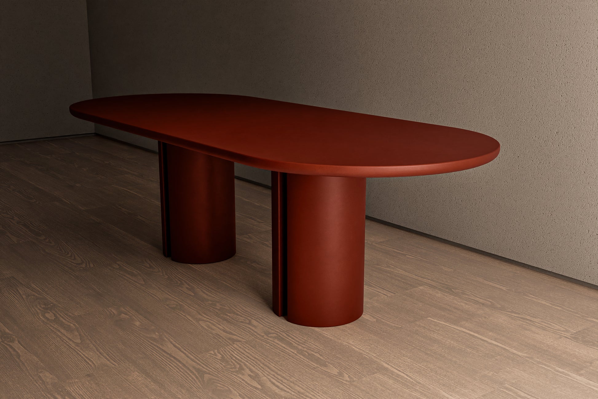 Presenting our elegant oval-shaped concrete table, designed with a refined 40mm top and a gently rounded bottom edge that enhances its sophisticated appearance. The striking base, complemented by a contemporary gap in the pedestals, distinguishes this table as a unique centrepiece for any modern space.